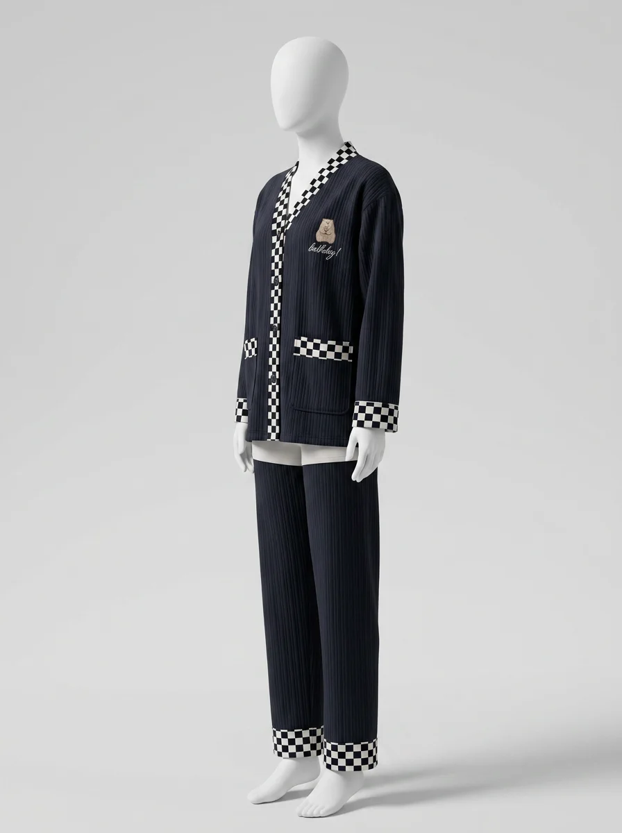 Un mélange de coton et de fibres techniques assure une texture agréable sur la peau tout en maintenant une température idéale. Des finitions boutonnées et une taille élastique offrent une liberté de mouvement totale pour se relaxer avec des pyjamas confortables après une longue journée.