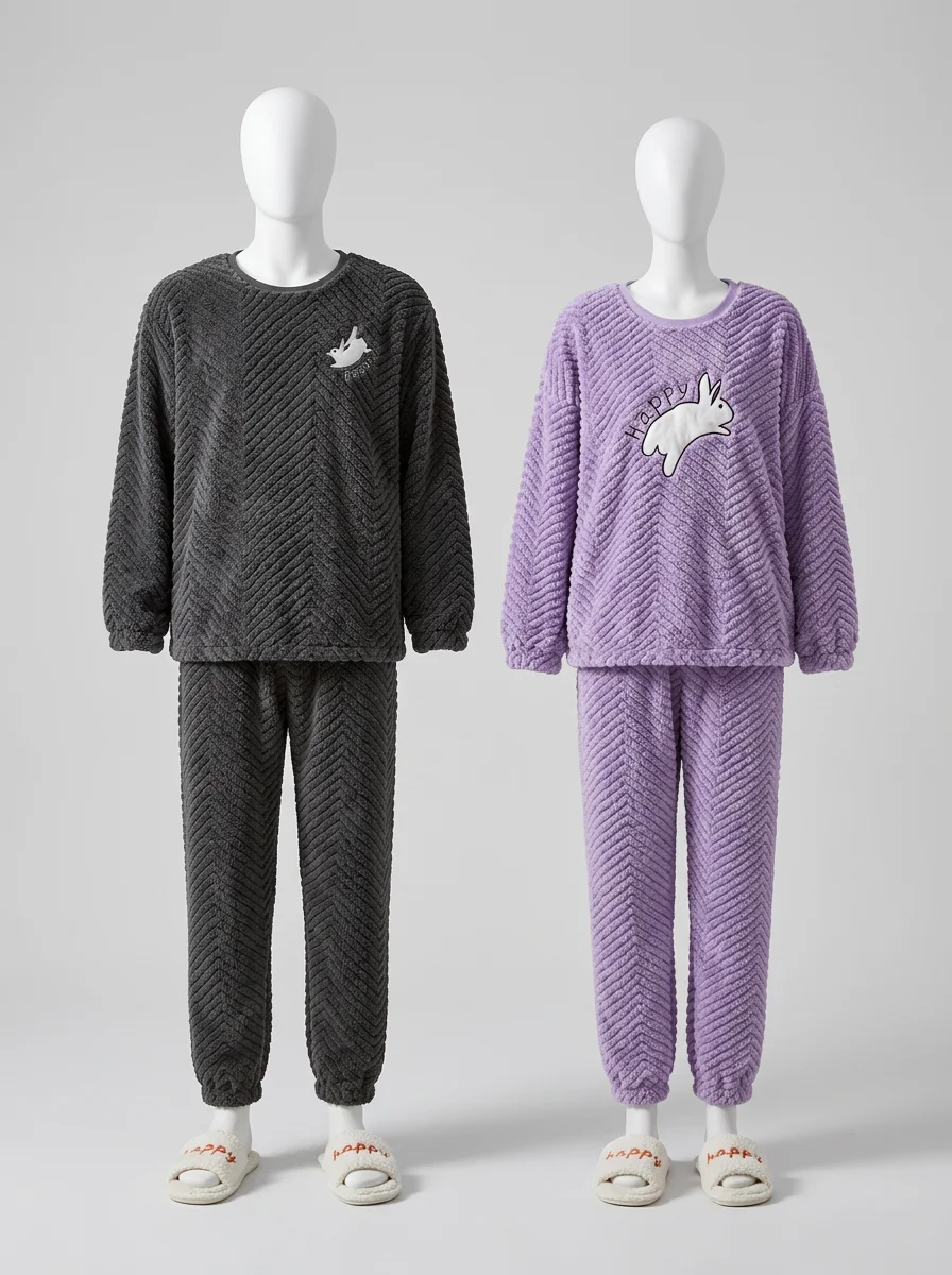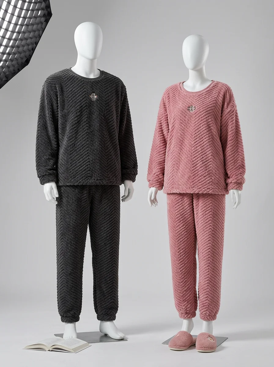 Des finitions soignées et une coupe ample garantissent une liberté de mouvement totale pour flâner dans la maison. La texture pelucheuse et le design moderne font des vêtements de nuit un choix privilégié pour affronter les températures basses avec élégance.