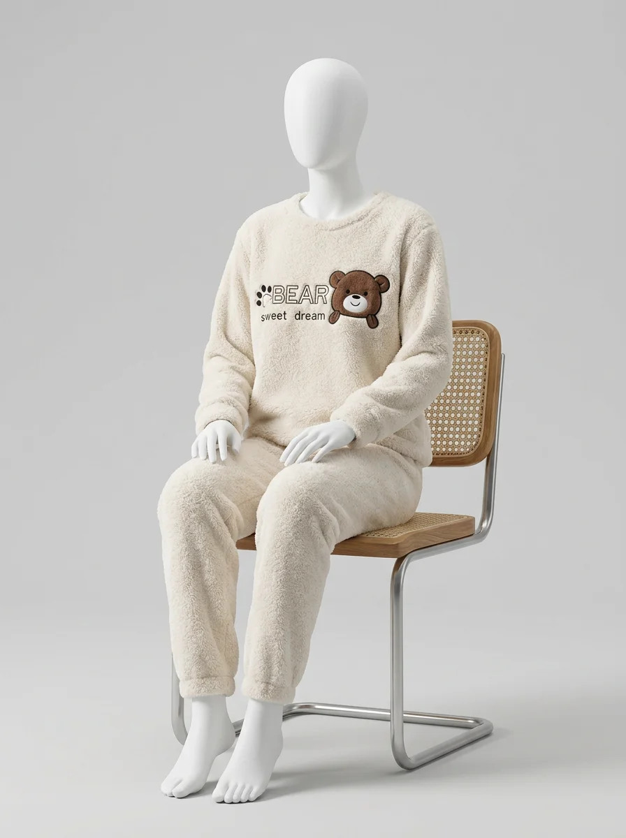 La flanelle molletonnée garantit une isolation optimale durant les nuits les plus fraîches de la saison. Des motifs d’oursons apportent une touche de fantaisie à une tenue de nuit indispensable pour affronter le froid avec élégance.