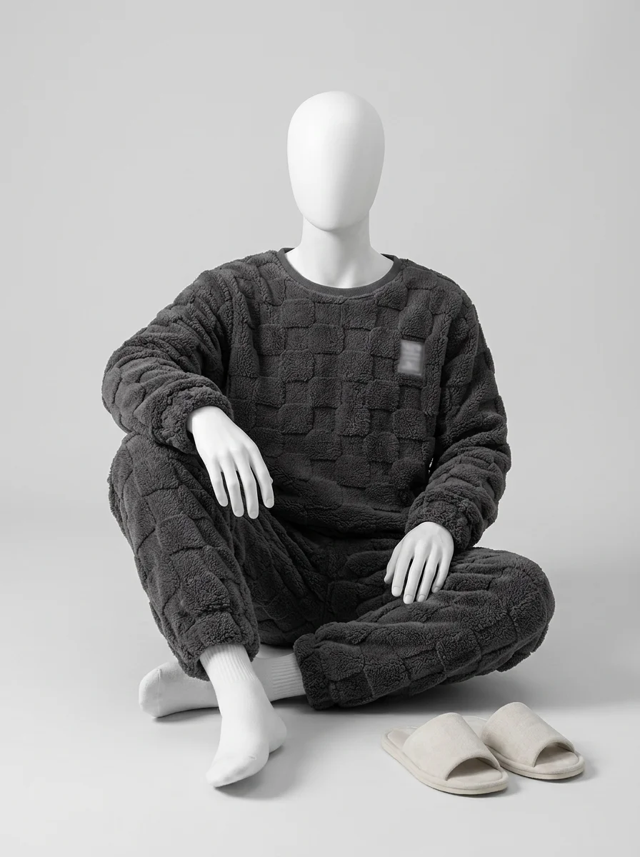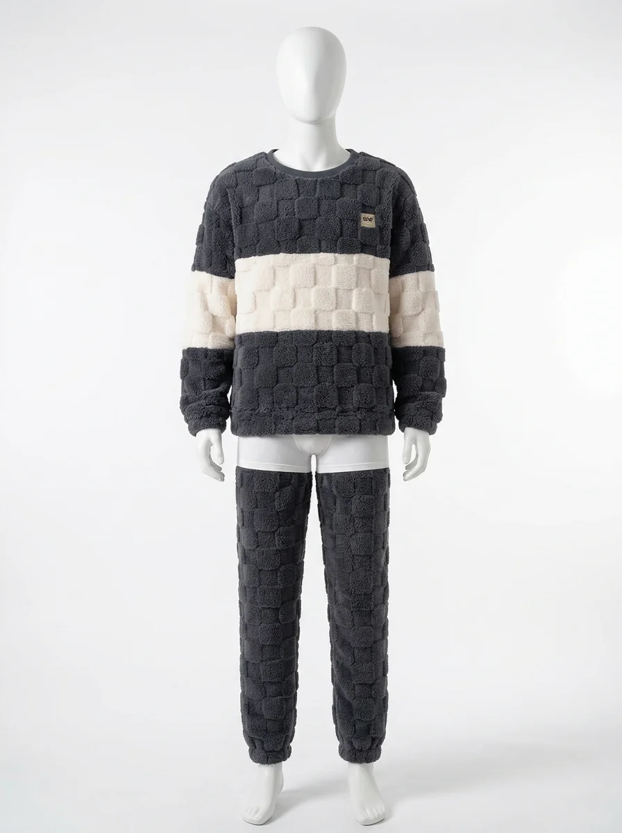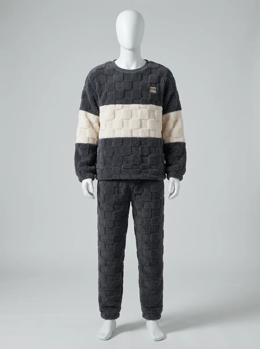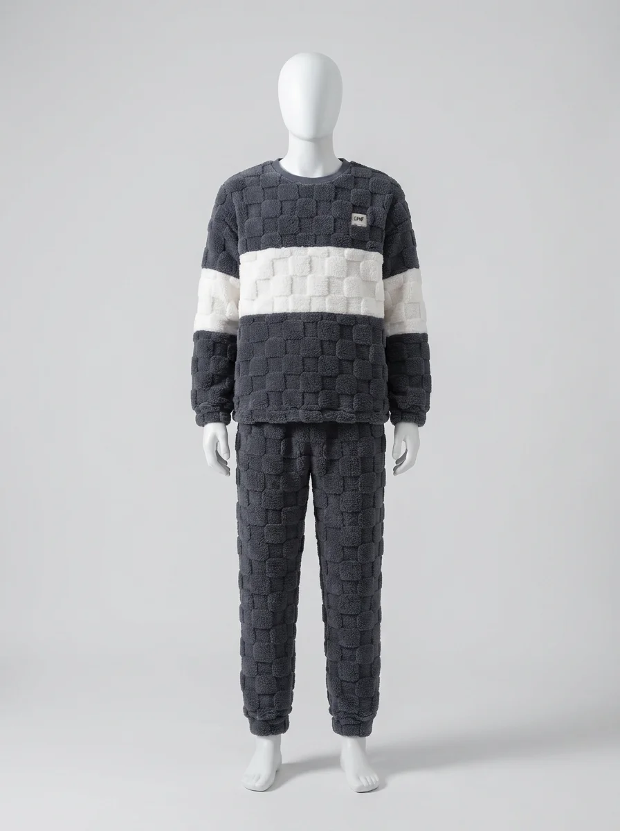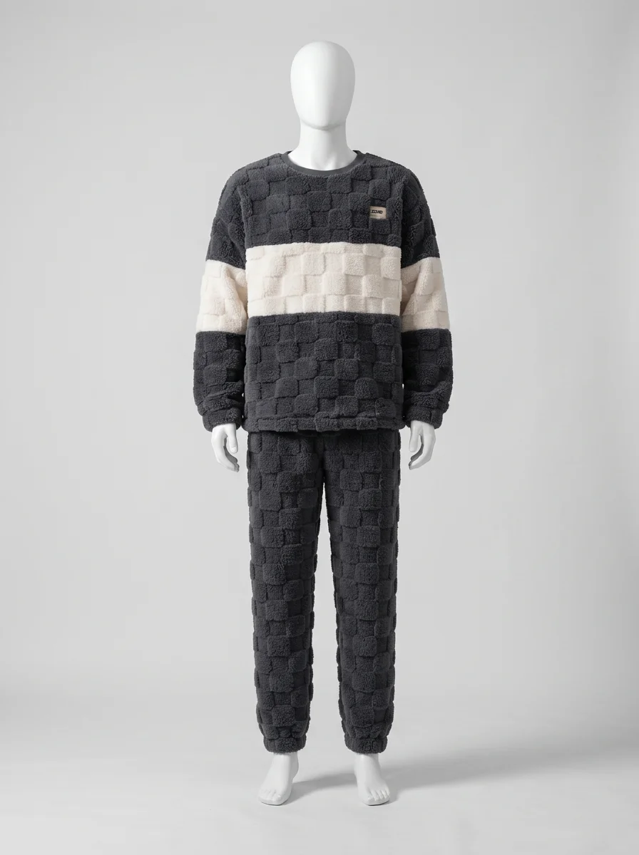 Des fibres épaisses capturent la chaleur corporelle tout en laissant le corps respirer librement. Un ensemble deux pièces offre une aisance de mouvement totale pour les moments de détente à la maison ou pour un sommeil réparateur et particulièrement profond.