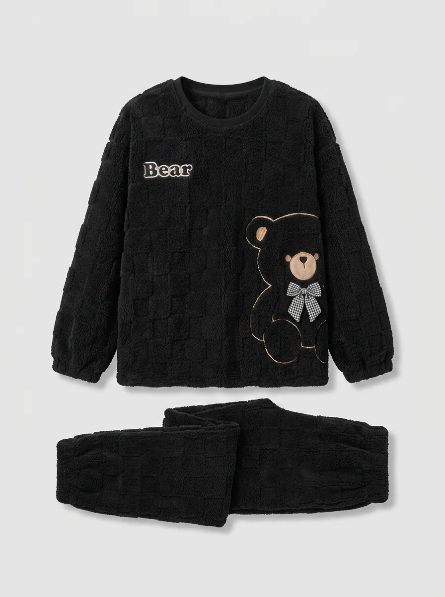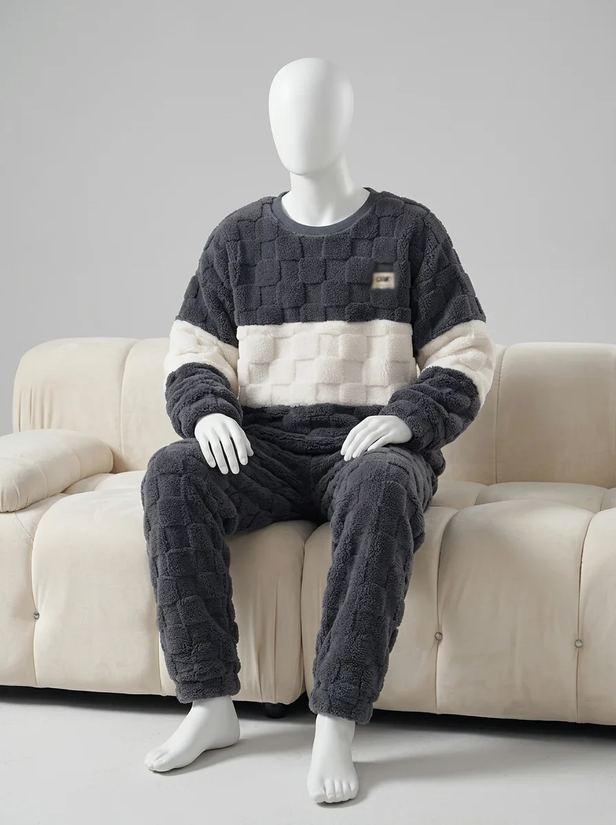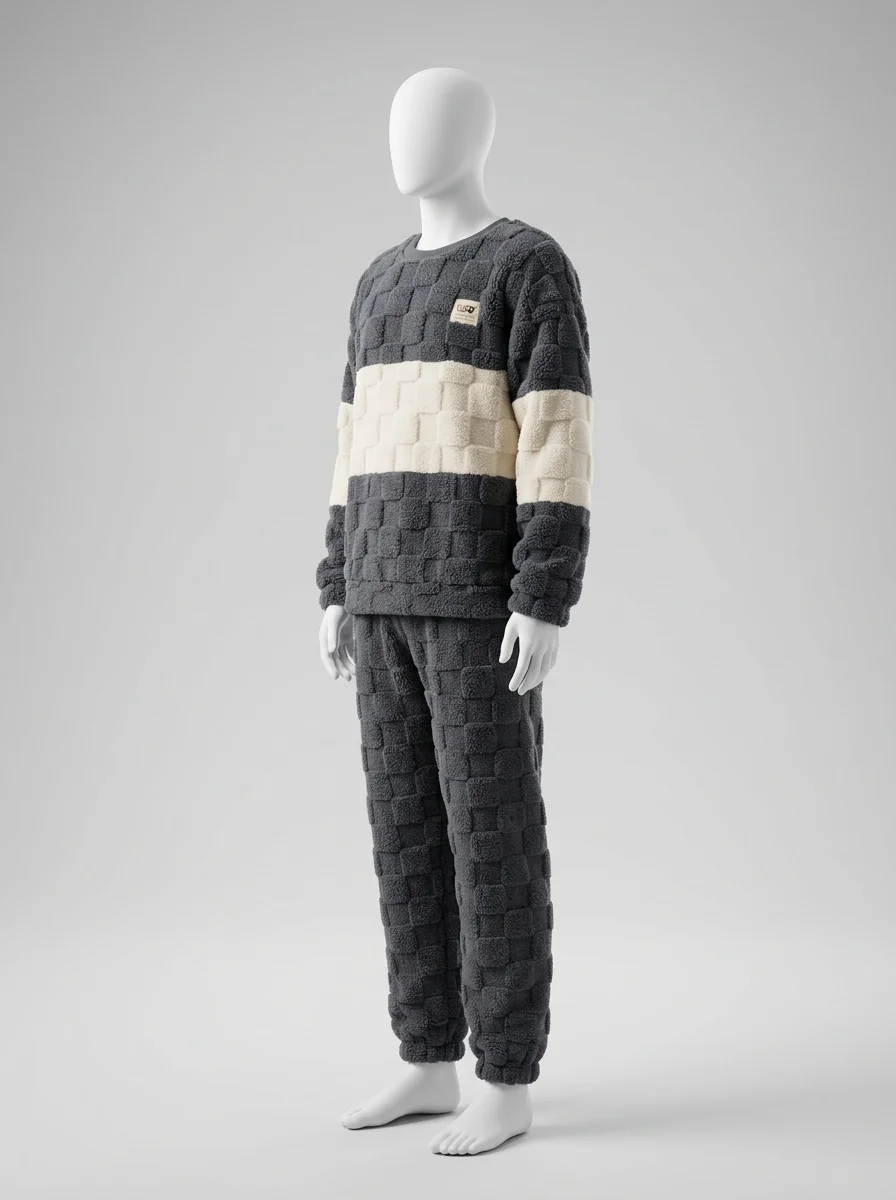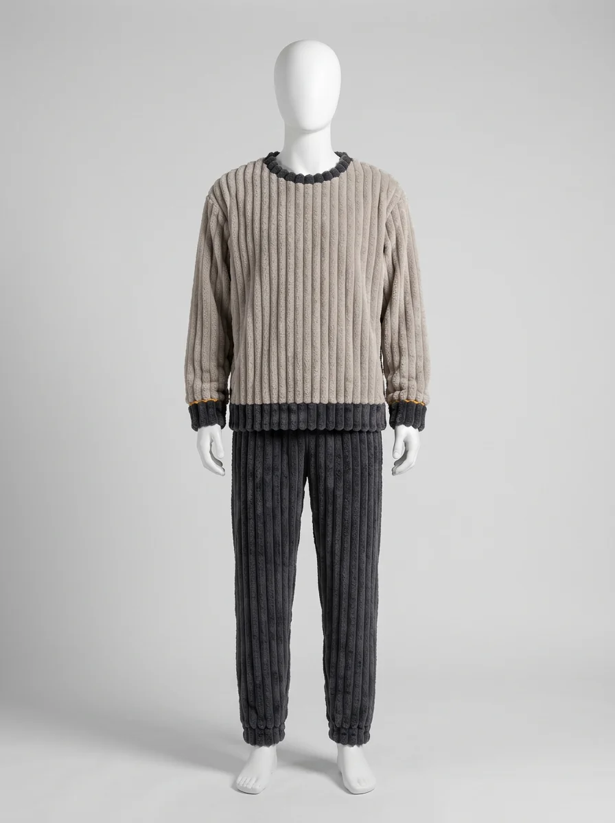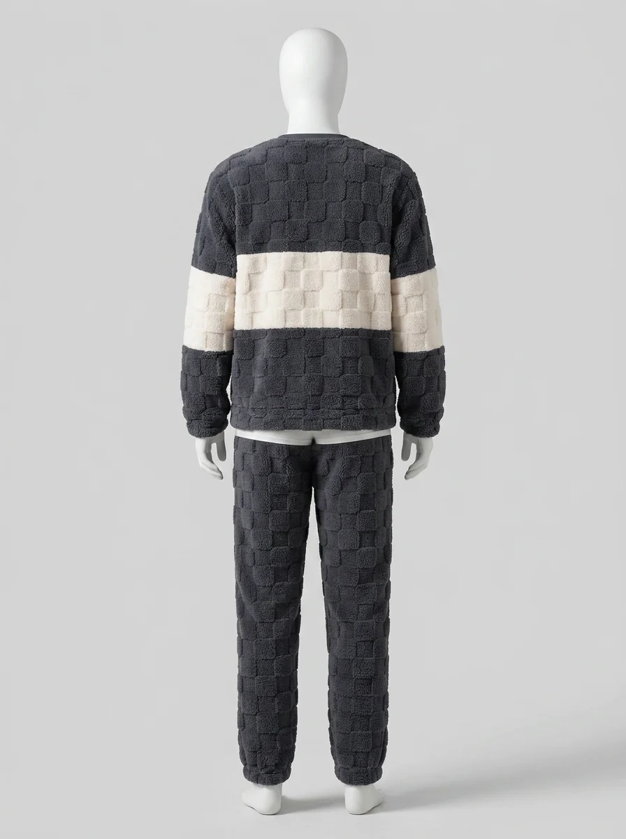 Des fibres épaisses capturent la chaleur corporelle tout en laissant le corps respirer librement. Un ensemble deux pièces offre une aisance de mouvement totale pour les moments de détente à la maison ou pour un sommeil réparateur et particulièrement profond.